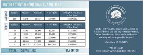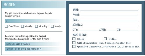 On the back of the pledge card, the example of the tiered monthly giving starts at $100. Our goal is to have you give whatever God is instructing you to give, even if that means $0.